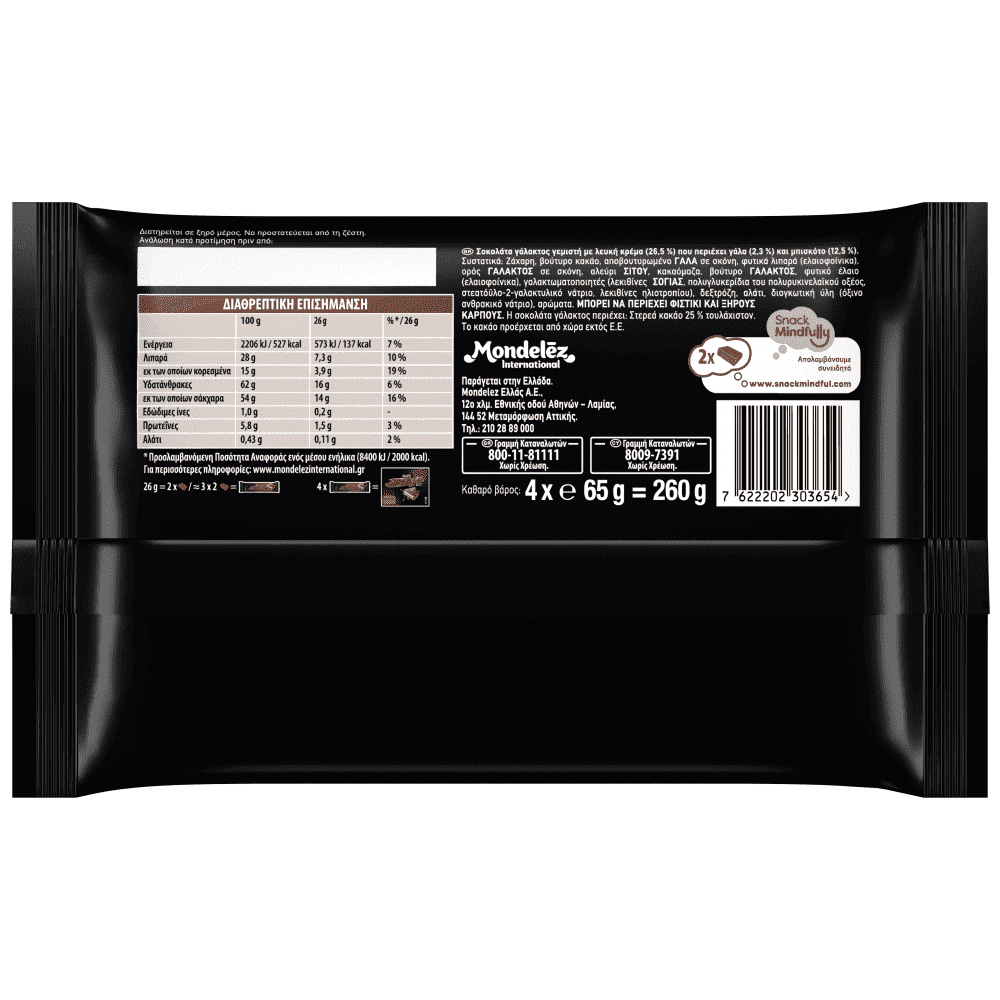 Mondelez Ελλάς Α.Ε. 12ο χλμ. Εθνικής οδού Αθηνών Λαμίας, 144 52 Μεταμόρφωση Αττικής. Γραμμή Καταναλωτών Ελλάδας Τηλ.: 210 28 89 000 Γραμμή Καταναλωτών Κύπρου Τηλ.: 8009-7391. Χωρίς χρέωση