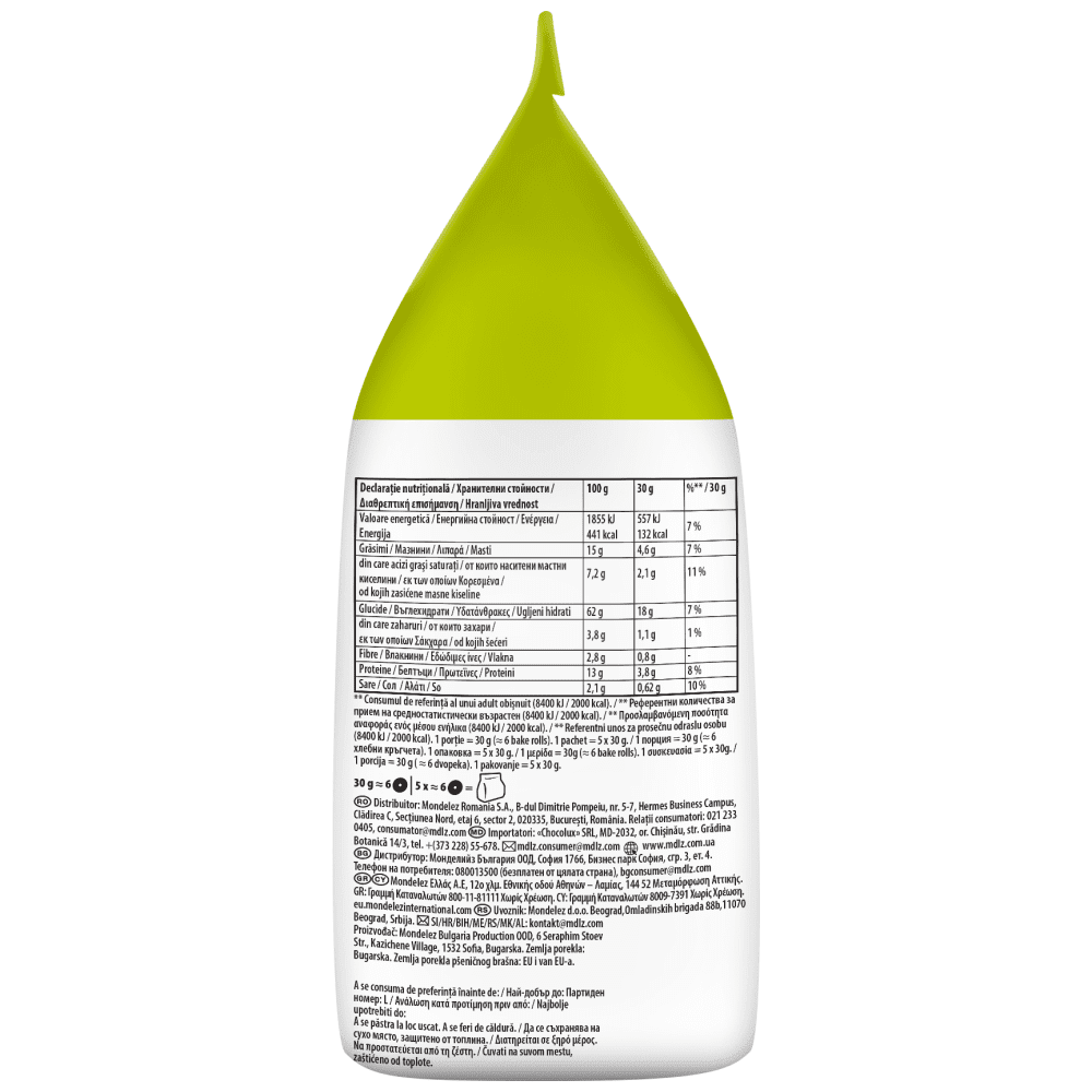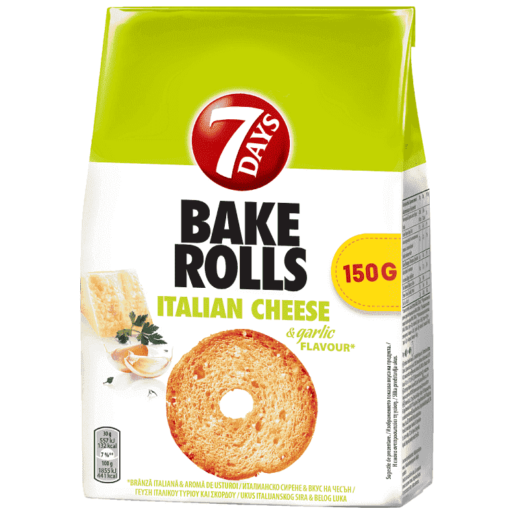 Αρτοσκευάσματα με τυρί ωρίμανσης και γεύση σκόρδου. Συστατικά: Αλεύρι ΣΙΤΟΥ, φοινικέλαιο, γλουτένη ΣΙΤΟΥ, ζάχαρη, ιωδιούχο αλάτι, ΠΑΡΜΙΤΖΆΝΟ ΡΕΤΖΙΆΝΟ ΤΥΡΙ 1,5%, διηθημένος ορός ΓΑΛΑΚΤΟΣ, κρεμμύδι σε σκόνη, ΤΥΡΙ σε σκόνη, εκχύλισμα μαγιάς, μαϊντανός, σκόρδο σε σκόνη, μαγιά, αλεύρι φασολιών, γαλακτωματοποιητής (στεατόϋλο-2-γαλακτυλικό νάτριο), φυσική αρωματική ύλη, βελτιωτικά αλεύρου (ασκορβικό οξύ, L-κυστεΐνη), άμυλο ΣΙΤΟΥ, μέσα οξίνισης (γαλακτικό ασβέστιο, γαλακτικό οξύ).Αλλεργιογόνα