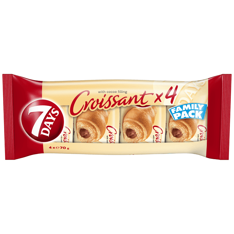 7DAYS κρουασάν με κρέμα κακάο, ένα λαχταριστό κρουασάν με πλούσια γέμιση. Ιδανικό για ένα γρήγορο σνακ ή ένα γλυκό πρωινό.