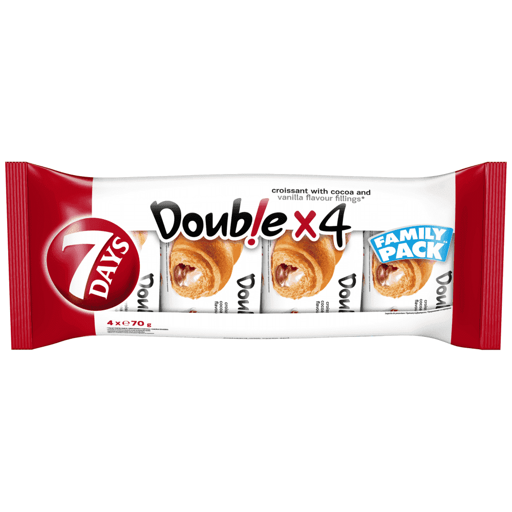 7DAYS κρουασάν με διπλή γέμιση κρέμας κακάο και γεύση βανίλια. Ιδανικό για ένα γρήγορο σνακ ή ένα γλυκό πρωινό.