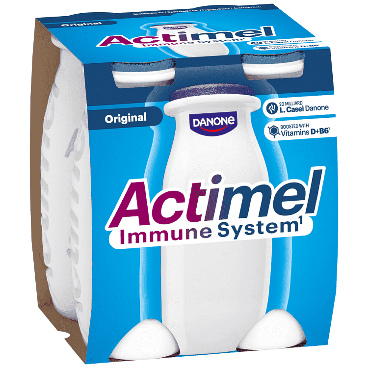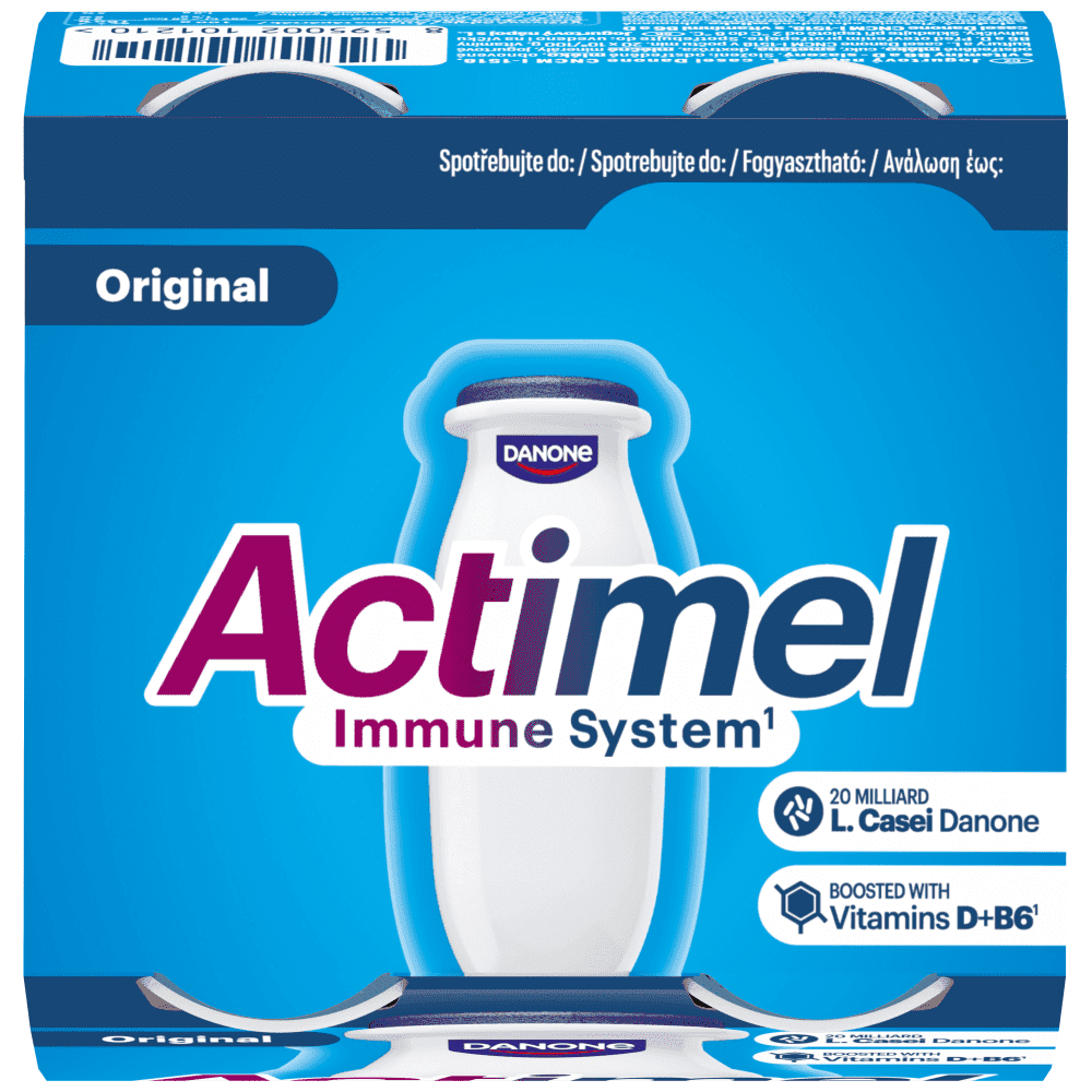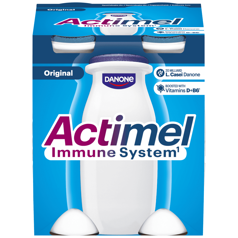 Το Αctimel περιέχει βιταμίνες Β6 και D, οι οποίες συμβάλλουν στη φυσιολογική λειτουργία του ανοσοποιητικού συστήματος, στο πλαίσιο μιας ισορροπημένης διατροφής και ενός υγιεινού τρόπου ζωής.