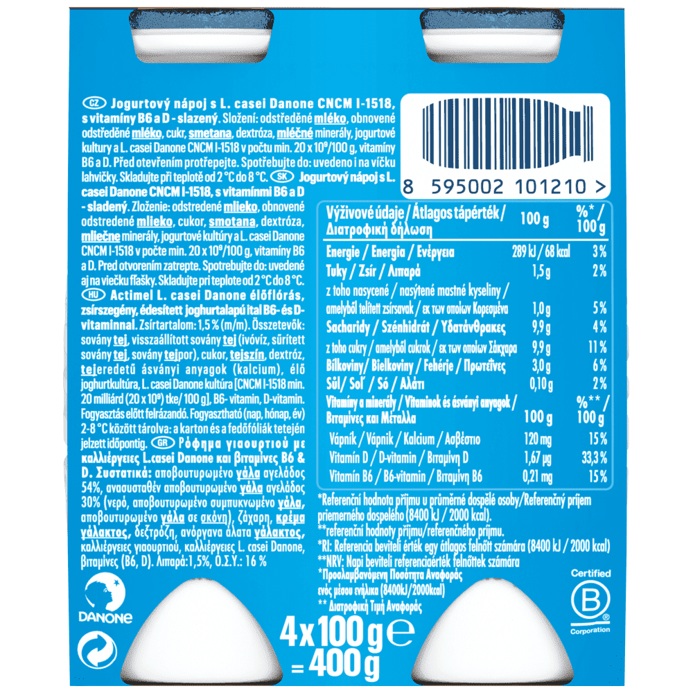 Ρόφημα γιαουρτιού με καλλιέργειες L.casei Danone και βιταμίνες B6 & D.