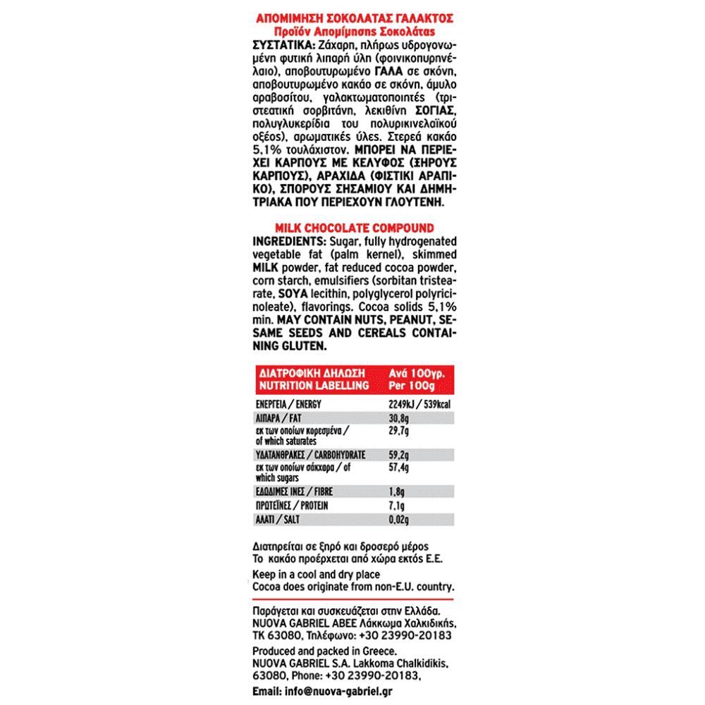 | ΕΝΕΡΓΕΙΑ / ENERGY | 2249kJ / 539kcal |