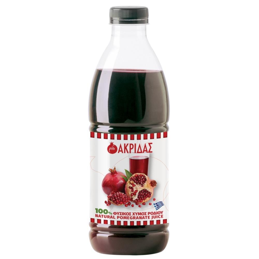 Το ρόδι Ακρίδας είναι 100% φυσικός χυμός ροδιού. Προέρχεται από μείξη των ποικιλιών Wonderful, Ερμιόνης, Καράβελος και Aco, με συνέπεια να δίνει ένα εξαιρετικό γευστικό αποτέλεσμα, σε ισορροπία ανάμεσα στην πλούσια αλλά υπόξινη γεύση του Wonderful και τη γλυκιά, βελούδινη γεύση των άλλων ποικιλιών.