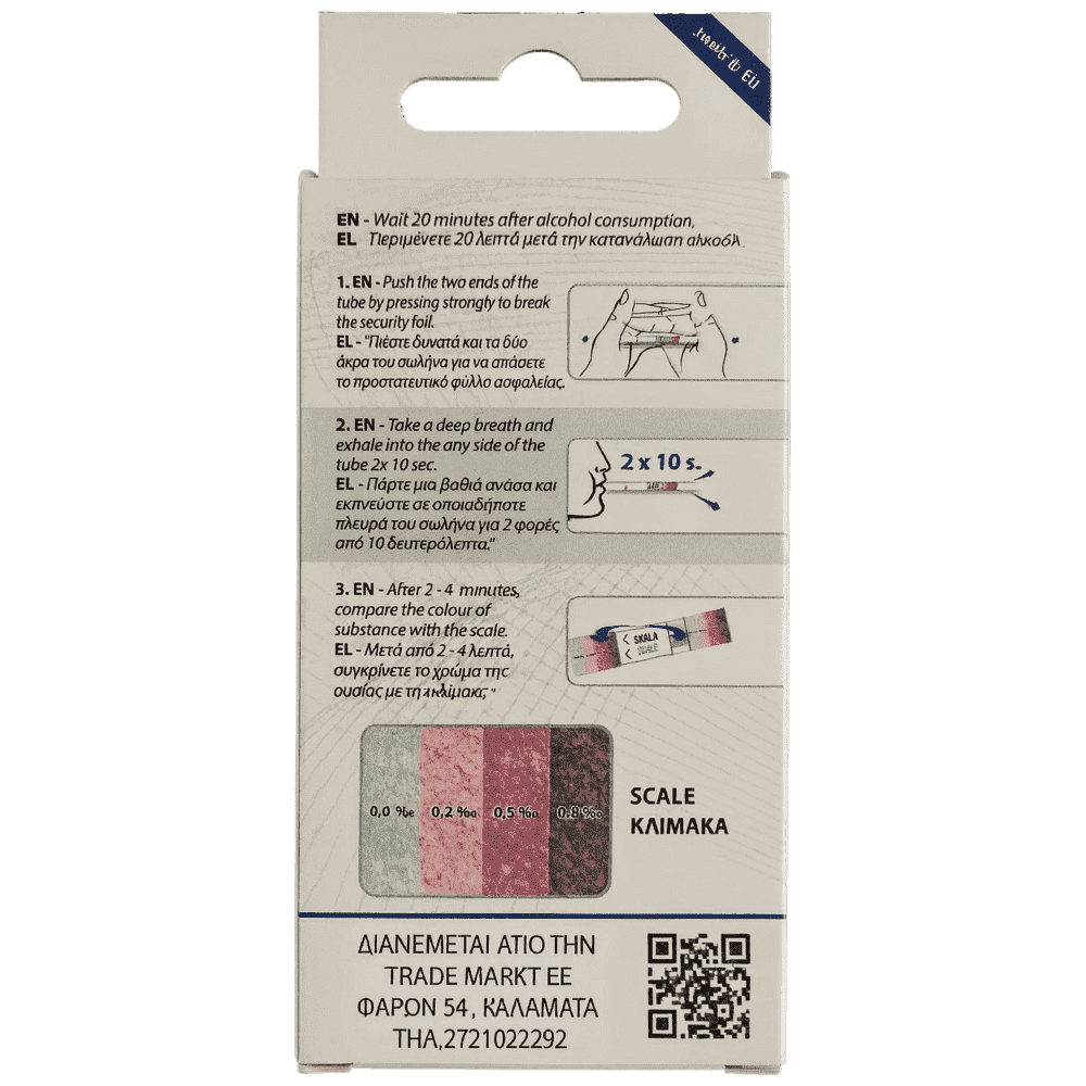 Ακρίβεια 99,4%, πιστοποιημένη από TV . Φέρει όλα τα απαραίτητα πιστοποιητικά και έγγραφα συμμόρφωσης Χωρίς τοξικά (χωρίς διχρωμικό κάλιο σε αντίθεση με πολλούς ανταγωνιστές) Διάρκεια ζωής: 24 μήνες Σύμφωνο με την ευρωπαϊκή νομοθεσία για καταναλωτικά προϊόντα(μη ιατρική κατάταξη) Το προϊόν ήδη χρησιμοποιείται σε Ευρώπη, Ασία και Μέση Ανατολή. Συνδιάζει ασφάλεια αξιοπιστία , απλότητα και χαμηλό κόστος
