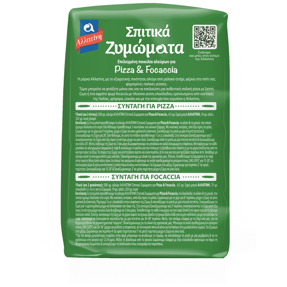 Η νέα σειρά της Αλλατίνη, Bread you love, με επιλεγμένες ποικιλίες αλεύρων για προζυμένιο ψωμί, αποτελεί την ιδανική επιλογή για εύκολη παρασκευή σπιτικού ψωμιού. Γιατί εμείς που αγαπάμε το καλό σπιτικό ψωμί, την ιδιαίτερη γεύση του, το άρωμα του αλλά και την ιδιαίτερη διαδικασία ζύμωσης, ξέρουμε ότι καλό Αλεύρι σημαίνει καλό Ψωμί. Η Αλλατίνη, συνδυάζοντας εξαιρετικής ποιότητας αλεύρι από μαλακό σιτάρι με όλα τα φυσικά αρώματα ενός προζυμιού, φέρνει στο σπίτι σας φημισμένες ιταλικές γεύσεις. Απολαύστε μια αυθεντική Ιταλική pizza με λεπτή ζύμη ή ένα αφράτο ψωμί focaccia με πλούσια γεύση ελαιολάδου, εμπνευσμένα από συνταγές της Ιταλίας.