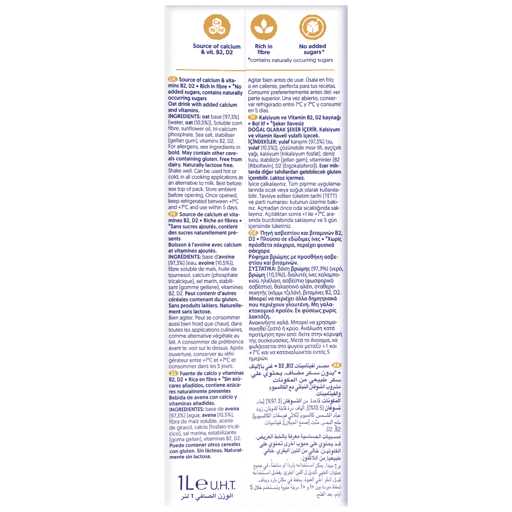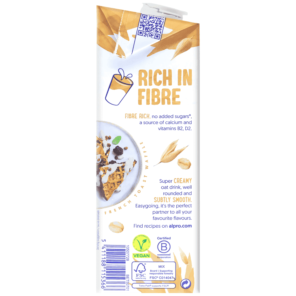 Αυτά τα μικροσκοπικά δημητριακά είναι εκ φύσεως πλούσια σε φυτικές ίνες, βιταμίνη Β, μέταλλα και ασβέστιο*, χωρίς πρόσθετα σάκχαρα και χωρίς καθόλου πρόσθετα γλυκαντικά. Έτσι, μπορείς να απολαύσεις το Ρόφημα βρώμης Alpro χωρίς ενοχές!
