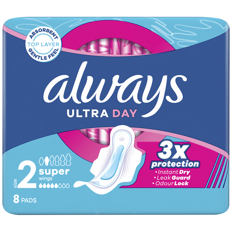 Κάθε γυναίκα έχει τις δικές της ανάγκες, αλλά η Always Ultra Long (Μέγεθος 2) με φτερά προσφέρει έως και 100% προστασία από διαρροές που προσαρμόζεται στο σώμα και τη ροή σας. Ιδανικό για γυναίκες με ελαφριά ροή και μέγεθος εσωρούχου L, για ήπια ροή με μέγεθος εσωρούχου M και L ή και για μεγάλη ροή με μέγεθος εσωρούχου S. Οι σερβιέτες Always Ultra διαθέτουν προστατευτικές ζώνες Secureguard και τζελ που κλειδώνει την υγρασία , τα οποία συγκρατούν τα υγρά στο κέντρο της σερβιέτας και βοηθούν την αποφυγή διαρροών. Επίσης διαθέτει τεχνολογία εξουδετέρωσης οσμών που, όχι απλά καλύπτει, αλλά εξουδετερώνει τις οσμές. Παρόλο που οι σερβιέτες Always Ultra είναι πολύ λεπτές με πάχος μόλις 3 χιλιοστά, προσφέρουν αίσθηση άνεσης και προστασίας κατά τη διάρκεια της περιόδου σας. Ξαναγράψτε τους κανόνες με την Always και αποκτήστε σερβιέτες με τέλεια εφαρμογή στο σώμα σας και τη ροή σας, χωρίς διαρροές. Δοκιμάστε τις Always Ultra Secure Night (Μέγεθος 4), τις καλύτερες σερβιέτες της Always Ultra για προστασία κατά τη διάρκεια της νύχτας.