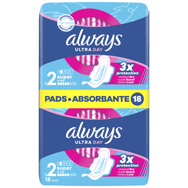 Μην συμβιβάζεστε με λιγότερο από 3x προστασία με τις σερβιέτες με φτερά Always Ultra Long (Μέγεθος 2) για την ημέρα. Οι σερβιέτες Always απορροφούν σε δευτερόλεπτα χάρη στην τεχνολογία InstantDry, και αποτρέπουν οσμές & διαρροές χάρη στις τεχνολογίες φράγμα LeakGuard και OdorLock. Τα μοναδικά φτερά ComfortLock έχουν σχεδιαστεί για καλύτερη εφαρμογή σε οποιοδήποτε είδος εσωρούχων (σε σχέση με το προηγούμενο προϊόν). Για έξτρα προστασία τη νύχτα, δοκιμάστε την Always Ultra Size 5. Οι σερβιέτες Always είναι δερματολογικά εγκεκριμένες από τη Skin Health Alliance