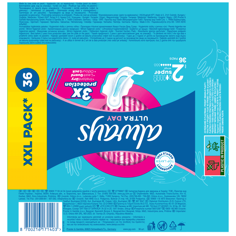 Μην συμβιβάζεστε με λιγότερο από 3x προστασία με τις σερβιέτες με φτερά Always Ultra Long (Μέγεθος 2) για την ημέρα. Οι σερβιέτες Always απορροφούν σε δευτερόλεπτα χάρη στην τεχνολογία InstantDry, και αποτρέπουν οσμές & διαρροές χάρη στις τεχνολογίες φράγμα LeakGuard και OdorLock. Τα μοναδικά φτερά ComfortLock έχουν σχεδιαστεί για καλύτερη εφαρμογή σε οποιοδήποτε είδος εσωρούχων (σε σχέση με το προηγούμενο προϊόν). Για έξτρα προστασία τη νύχτα, δοκιμάστε την Always Ultra Size 5. Οι σερβιέτες Always είναι δερματολογικά εγκεκριμένες από τη Skin Health Alliance