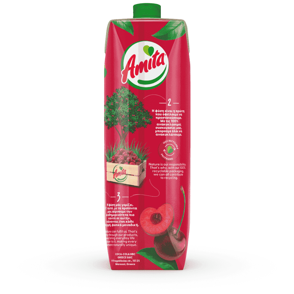 Εμείς στην Amita παρασκευάζουμε και συσκευάζουμε τους χυμούς μας με τις πιο σύγχρονες μεθόδους για να έχετε στο ποτήρι σας τον καλύτερο συσκευασμένο χυμό. Χρησιμοποιούμε εξαιρετικές ποικιλίες φρούτων, εξασφαλίζοντας έτσι τις υψηλότερες προδιαγραφές ποιότητας και ασφάλειας με χυμούς που έχουν υπέροχη γεύση. Οι χυμοί Amita δεν περιέχουν συντηρητικά και πριν τους ανοίξετε μπορείτε να τους αφήνετε εκτός ψυγείου χωρίς τον κίνδυνο αλλοιώσεων, χάρη στην παστερίωση τους και στην ασηπτική συσκευασία TETRA PAK. Πλέον κυκλοφορούν και με μη αποσπώμενο καπάκι συμβάλλοντας στον περιορισμό των απορριμμάτων με την ανακύκλωση ολόκληρης της συσκευασίας.