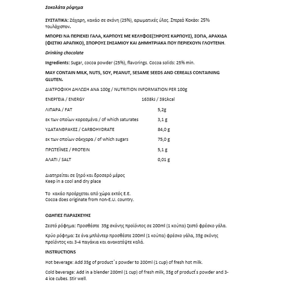 Το κακάο προέρχεται από χώρα εκτός Ε.Ε. Cocoa does originate from non-E.U. country.
