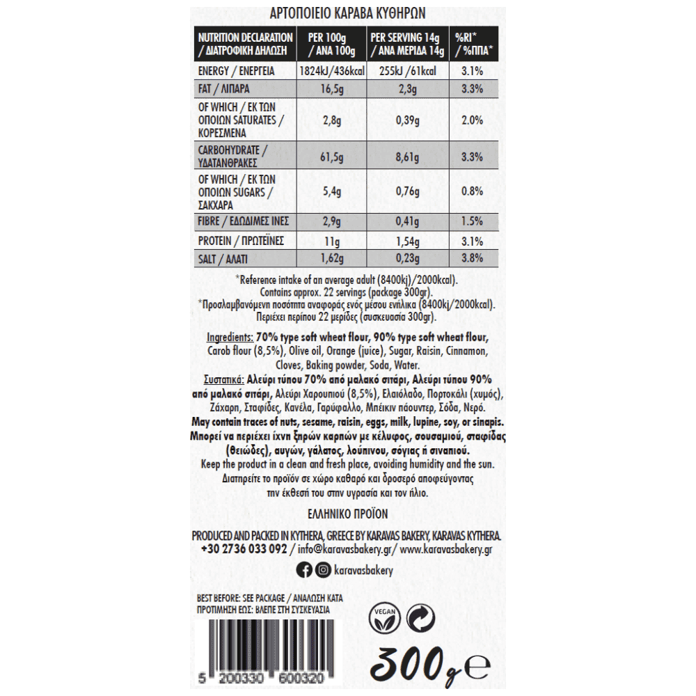 | ENERGY / ΕΝΕΡΓΕΙΑ | 1824kj/436kcal | 255kj/61kcal | 3,1% |