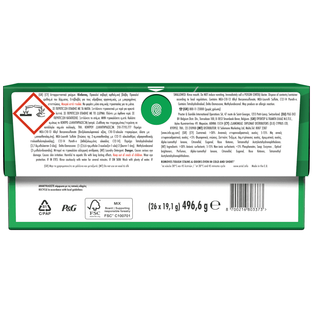 Αστραφτερή Καθαριότητα Ariel σε χαμηλότερες θερμοκρασίες για εξοικονόμηση ενέργειας.