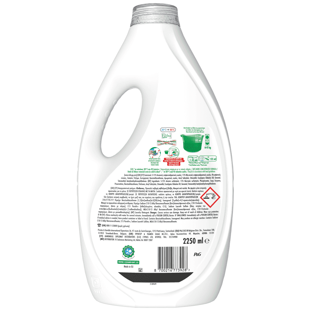Το υγρό απορρυπαντικό Ariel Touch of Lenor Color προσφέρει εκπληκτική καθαριότητα από την 1η πλύση, ακόμη και στους 30°C. Η σύνθεσή του σχεδιάστηκε ειδικά για πλύσιμο σε κρύο νερό, και συμπεριλαμβανει την τεχνολογία COLD BOOST. Επίσης, το υγρό απορρυπαντικό Ariel διατηρεί ζωηρά τα χρώματα για μεγαλύτερο χρονικό διάστημα και βοηθά στην πρόληψη της απώλειας χρώματος, ενώ χαρίζει στα ρούχα σας τη φρεσκάδα του Lenor που διαρκεί. Μπορείτε, επίσης, να χρησιμοποιήσετε το υγρό απορρυπαντικό Ariel Touch of Lenor Color μαζί με το πράσινο καπάκι, για να προετοιμάσετε τους λεκέδες. Στη συνέχεια, τοποθετήστε τα ρούχα σας στο πλυντήριο. Για καλύτερα αποτελέσματα, τοποθετήστε το καπάκι δοσολογίας με το απορρυπαντικό ρούχων κατευθείαν στον κάδο του πλυντηρίου. Για περιβαλλοντικούς λόγους, δεν διαθέτουμε σε όλα τα μπουκάλια μας καπάκι δοσολογίας, αλλά είναι διαθέσιμο δωρεάν στον ιστότοπο ariel.info.