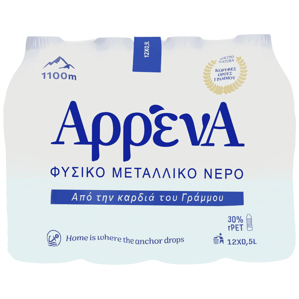 Το Φυσικό Μεταλλικό Νερό ΑRRENA αναβλύζει από την πηγή Κεφαλόβρυσο που βρίσκεται σε υψόμετρο 1.100m στο όρος Γράμμος, μέσα σε πυκνά δάση οξιάς, ελάτης και μαύρης πεύκης και εντός της περιοχής προστασίας NATURA 2000. Ανέγγιχτο και αγνό, το νερό μας εμφιαλώνεται άμεσα σε φυσική θερμοκρασία, χωρίς καμία ανθρώπινη παρέμβαση. Το Φυσικό Μεταλλικό Νερό ΑRRENA είναι πλούσιο σε πολύτιμα μέταλλα και ιχνοστοιχεία κι έχει χαμηλή περιεκτικότητα σε άλατα, δίνοντάς του διακριτική γεύση και καθιστώντας το ελαφρύ. Είναι κατάλληλο για νήπια και μικρά παιδιά και για όσους κάνουν δίαιτα πτωχή σε νάτριο. H φιάλη 0,5L σε συσκευασία PET σας συντροφεύει κάθε στιγμή της ημέρας που χρειάζεστε ποιοτική ενυδάτωση, καθώς έχει το κατάλληλο μέγεθος για την τσάντα, το αυτοκίνητο, την εργασία και για να είναι μαζί σας σε κάθε δραστηριότητα της καθημερινότητας