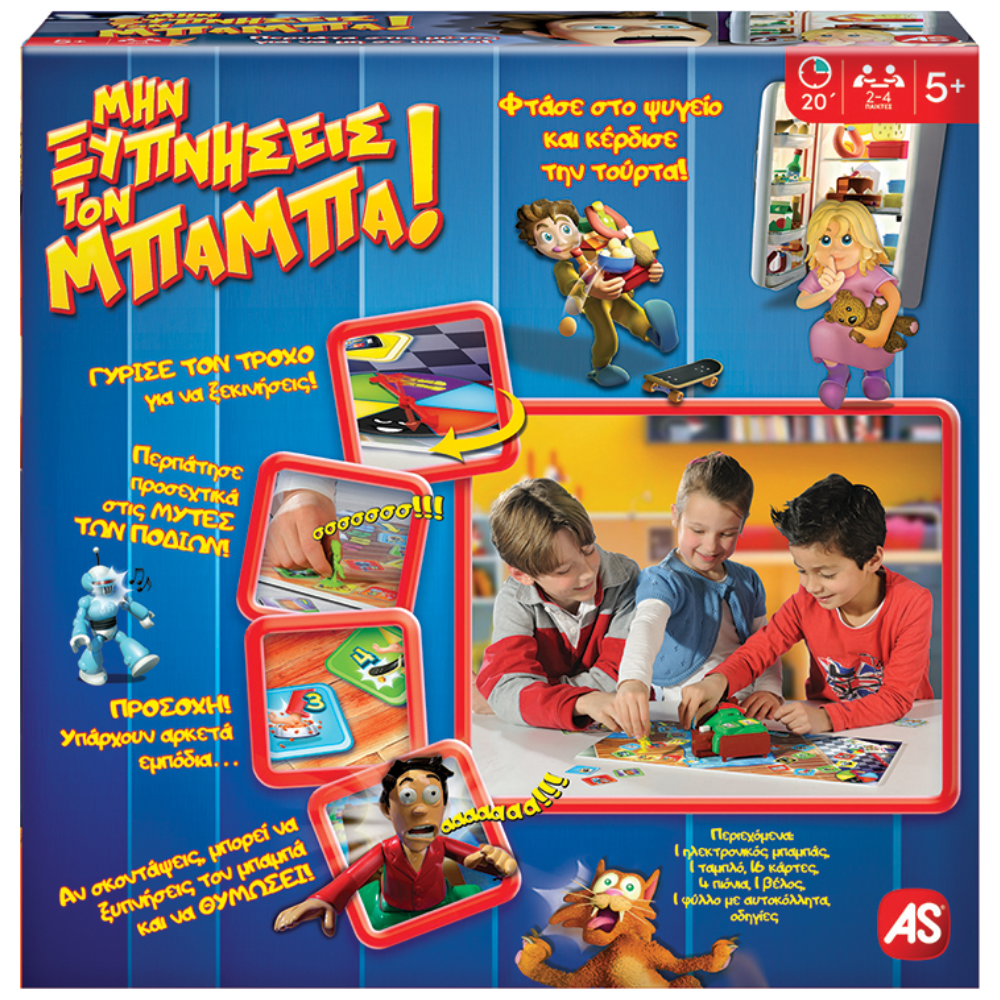 Είναι αργά το βράδυ και ξαπλώνεις στο κρεβάτι σου. Ξαφνικά θυμάσαι τη σοκολατένια τούρτα στο ψυγείο και δεν μπορείς να αντισταθείς! Πρέπει να διασχίσεις όλο το σπίτι στις μύτες των ποδιών σου ως το ψυγείο. Πρόσεχε τα εμπόδια που κάνουν θόρυβο και μπορεί να ξυπνήσουν τον μπαμπά! Γύρισε τον τροχό και δες σε ποιο πεδίο πρέπει να μετακινηθείς. Αν οι κάρτες σου δεν ταιριάζουν σε αυτό το πεδίο, πρέπει να πατήσεις το ξυπνητήρι τόσες φορές όσες υποδεικνύει ο αριθμός στο πεδίο. Απλά ευχήσου να μην ξυπνήσει ο μπαμπάς! Αν ξυπνήσει, έχασες. Ο πρώτος παίκτης που θα καταφέρει να φτάσει στο ψυγείο, κερδίζει την τούρτα!