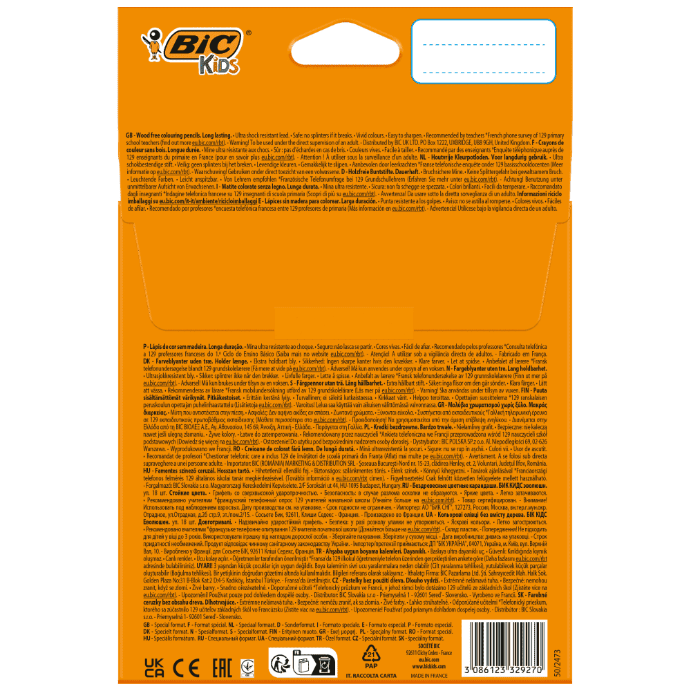 Μια ιδιαίτερη εμπειρία ζωγραφικής για τα παιδιά, με ένα πακέτο από παιχνιδιάρικα, οικολογικά χρωματιστά μολύβια της γκάμας BIC Kids. Διαθέτουν έντονα χρωματισμένη μύτη με εξαιρετική αντοχή, εύκολο ακόνισμα και άριστη κάλυψη. Το σώμα τους είναι φτιαγμένο από συνθετική ρητίνη, που αντέχει στο δάγκωμα και δεν βγάζει αγκίδες αν σπάσει. Είναι ιδανικά για παιδιά 5 ετών και άνω, με εξαγωνικό σώμα που εξασφαλίζει σωστή λαβή και δεν τα αφήνει να κυλήσουν από το τραπέζι.