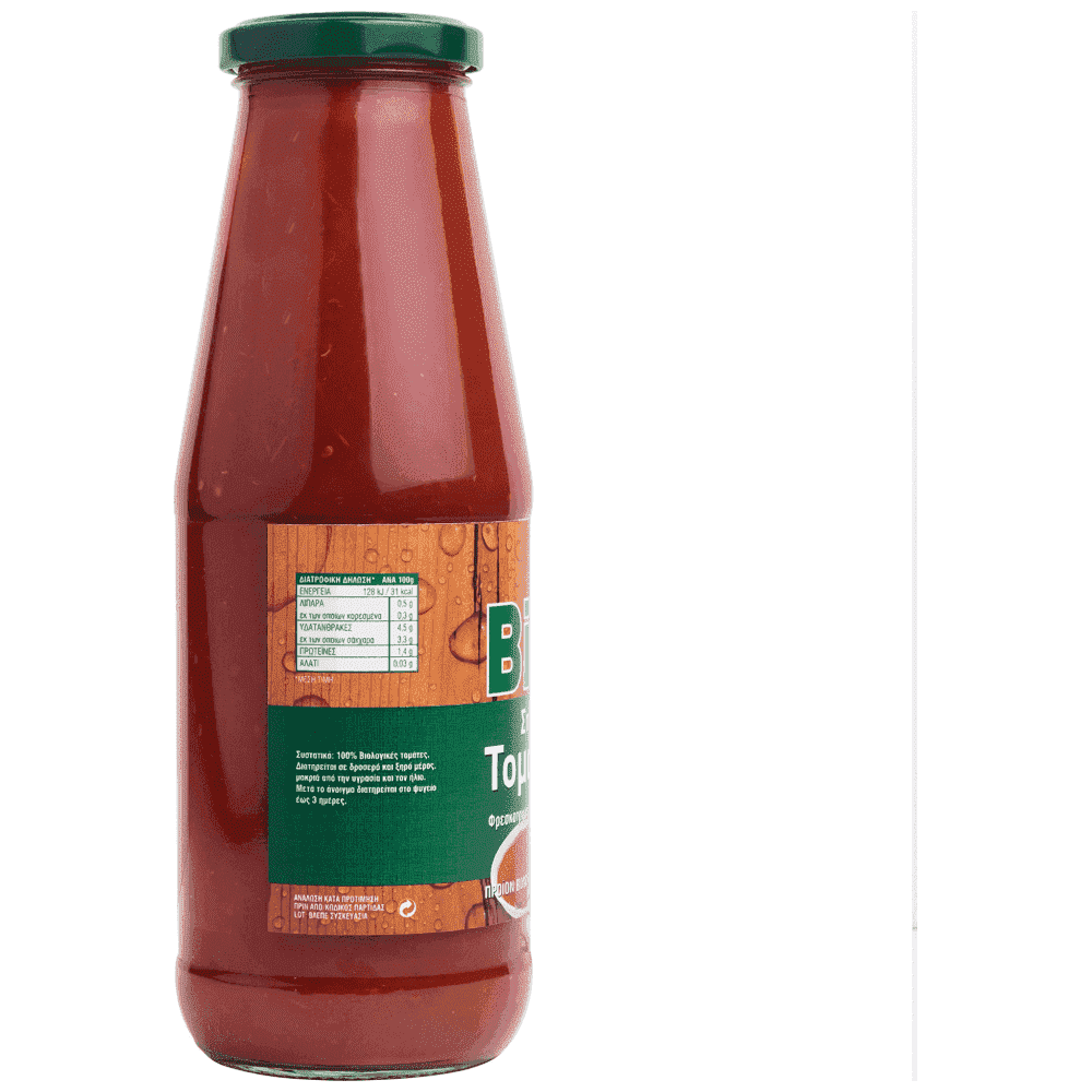 Σπιτική βιολογική τομάτα Bio Farma , περασμένη στον τρίφτη. Ταιριάζει σε όλα τα φαγητά κατσαρόλας, φούρνου και σάλτσες. Παράγεται με παραδοσιακό τρόπο από προσεκτικά επιλεγμένες τομάτες, που έχουν καλλιεργηθεί με μεράκι χωρίς φυτοφάρμακα και χημικά λιπάσματα. Όλα αυτά έχουν σαν αποτέλεσμα την εξαιρετική γεύση, που μας θυμίζει άλλες ξεχασμένες εποχές. Δύο σε ένα : και αγνό προϊόν και γεύση.