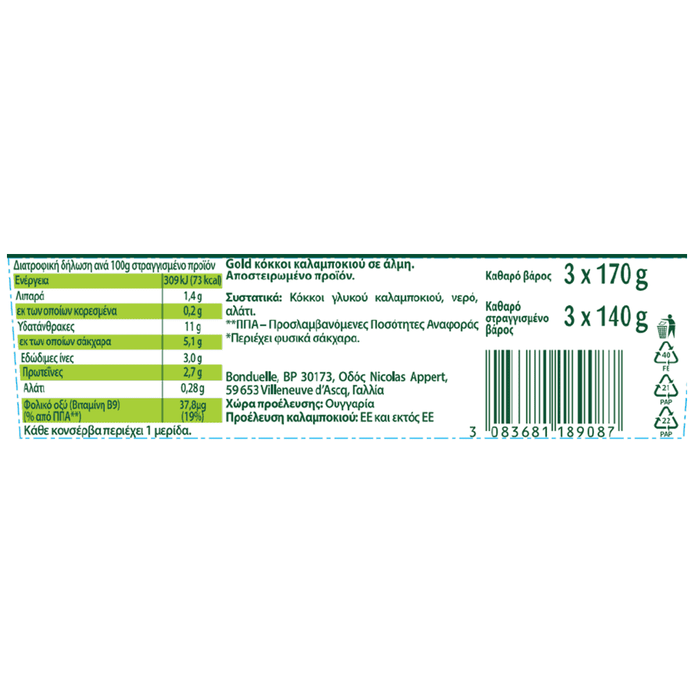 Γλυκό, τραγανό και γευστικό καλαμπόκι, ιδανικό για υγιεινά γεύματα και σαλάτες. Χωρίς συντηρητικά, χωρίς έξτρα ζάχαρη, πλούσιο σε εδώδιμες ίνες.