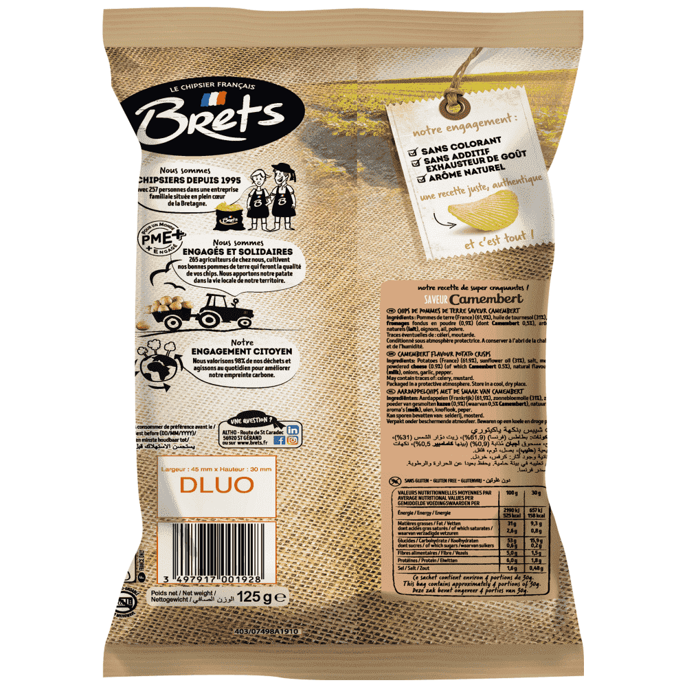 Η premium ποιότητα των BRETS έχει κατακτήσει πάνω από το 45% του μεριδίου των chips πατάτας στην Γαλλία! Παράγονται από τις καλύτερες πατάτες τηγανισμένες σε αγνό ηλιέλαιο, αναμειγμένα με εξαιρετικής ποιότητας θαλασσινό αλάτι από τις περίφημες αλυκές της Geurande και τις πιο νόστιμες φυσικές αρωματικές ύλες.