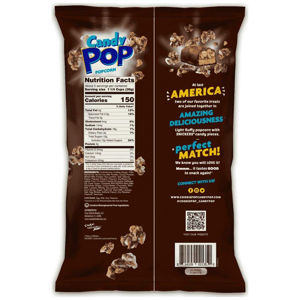 Ετοιμάσου για την απόλυτη ανατροπή στο snack game! Το Candy Pop Snickers Popcorn φέρνει κοντά δύο κορυφαίους κόσμους: το λαχταριστό Snickers και το τραγανό, φρέσκο popcorn. Το αποτέλεσμα; Μια γευστική εμπειρία που δεν μπορείς να σταματήσεις! Απόλαυσε τις τραγανές μπουκιές popcorn με σοκολάτα γάλακτος, κομμάτια φυστικιού και καραμέλας όλα με την αυθεντική υπογραφή Snickers. Είναι το snack που τρως με πάθος και δύσκολα το μοιράζεσαι.