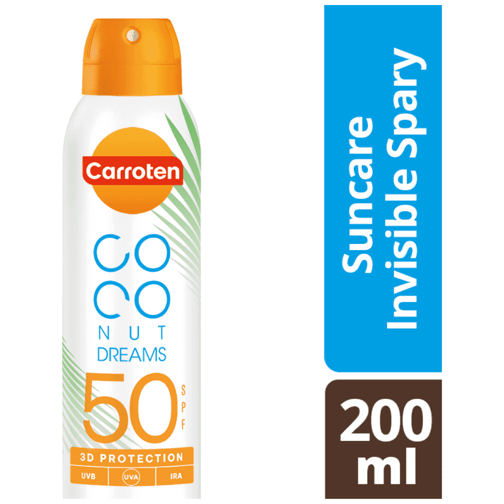 Το αντηλιακό mist, Carroten Coconut Dreams SPF 50, εμπλουτισμένο με το προηγμένο σύστημα Superdry, προφέρει άμεση απορρόφηση, χωρίς υπολείμματα λιπαρότητας. Άμεση μείωση της θερμοκρασίας έως 2°C, που αφήνει στην επιδερμίδα μια αναζωογονητική αίσθηση δροσιάς. Επίσης, το 360° σύστημα ψεκασμού παρέχει εύκολη εφαρμογή υπό κάθε κλίση.
