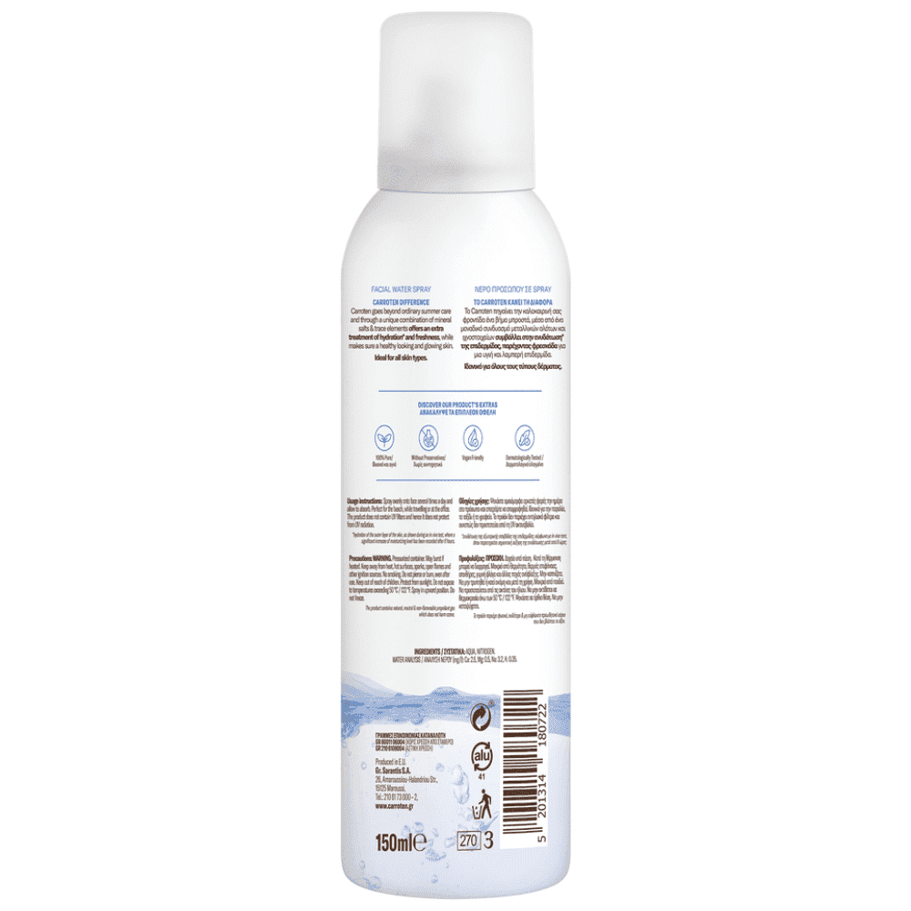 Το αναζωογονητικό νερό προσώπου Carroten συμβάλλει στην ενυδάτωση της επιδερμίδας, παρέχοντας φρεσκάδα κάτω από τον ήλιο και περιποίηση στο στρεσαρισμένο δέρμα.