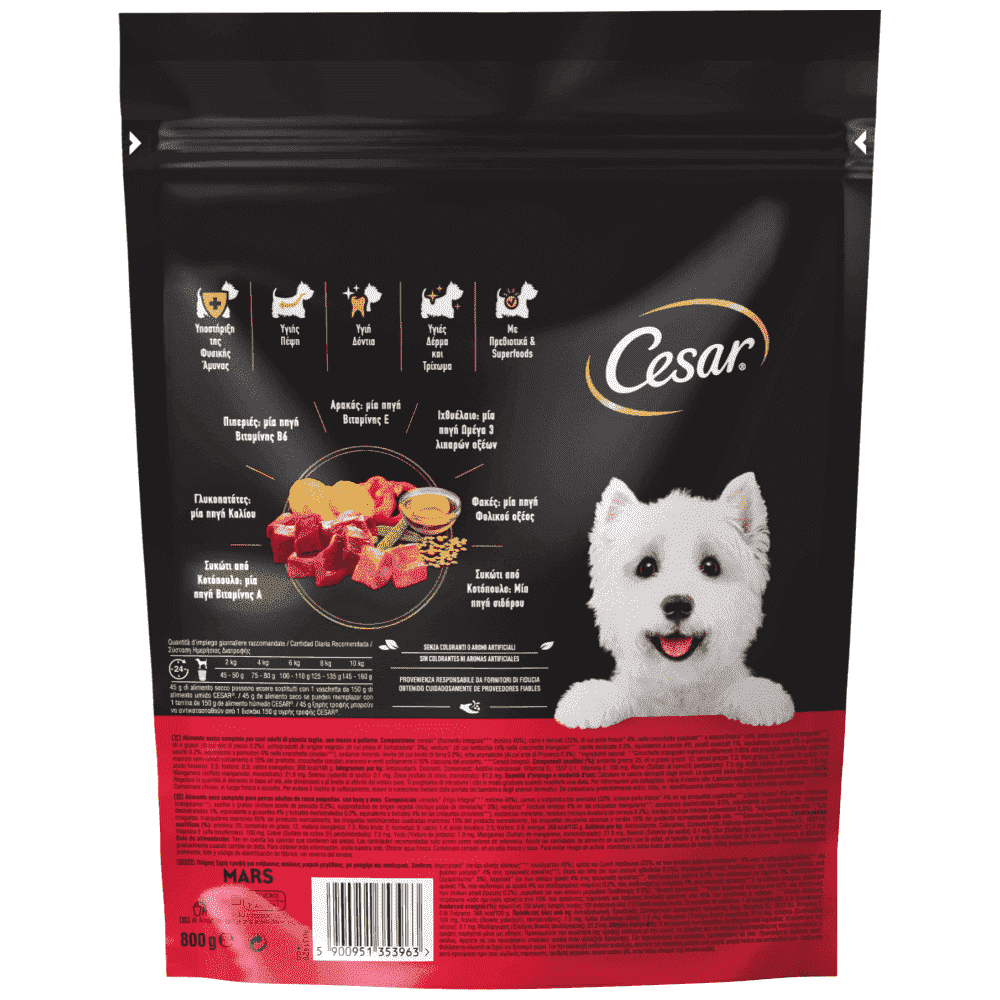 Σύνθεση: δημητριακά* (σιτάρι ολικής αλέσεως*** τουλάχιστον 40%), κρέας και ζωικά παράγωγα (33%, εκ των οποίων