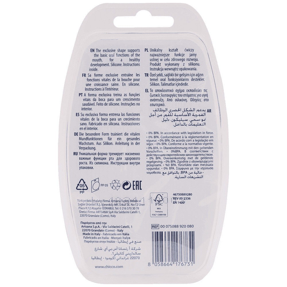 Χαρακτηριστικά: Ορθοδοντικός σχεδιασμός Physio Forma: Υποστηρίζει τη φυσική ανάπτυξη του στόματος και προάγει τη σωστή θέση της γλώσσας. Μεγάλες οπές αερισμού: Εξασφαλίζουν τη ροή του αέρα για τη μείωση του ερεθισμού στο δέρμα. Απαλή και εύκαμπτη θηλή: Κατασκευασμένη από σιλικόνη, με βελούδινη υφή για επιπλέον απαλότητα. Ελαφριά κατασκευή: Ιδανική για τα ευαίσθητα στοματάκια των μωρών. Κατάλληλη για νεογέννητα: Σχεδιασμένη για χρήση από 0 έως 6 μηνών.
