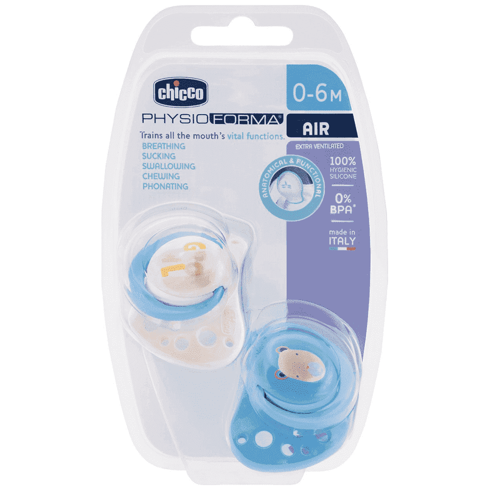 Το σετ Chicco Physio Forma Air περιλαμβάνει δύο πιπίλες σχεδιασμένες για να υποστηρίζουν τη φυσική αναπνοή του μωρού σας και να προσφέρουν μέγιστη άνεση.