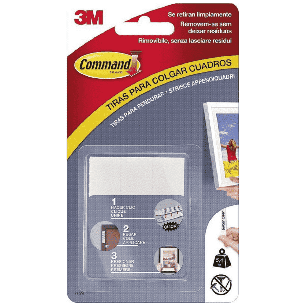 Ξεχάστε τις τρύπες από καρφιά, τους ραγισμένους σοβάδες και τα υπολείμματα κόλλας στους τοίχους σας. Οι Ταινίες για Κάδρα Command κάνουν τη διακόσμηση μια γρήγορη και εύκολη υπόθεση! Το "κλικ" που ακούγεται σας επιβεβαιώνει ότι οι Ταινίες έχουν τοποθετηθεί σωστά και συγκρατούν το βάρος της κορνίζας. Το πιο σημαντικό πλεονέκτημά τους είναι ότι σας επιτρέπουν να κατεβάσετε ή να μετακινήσετε τις φωτογραφίες σας χωρίς να προκαλέσετε σημάδια, τρύπες και ζημιές! Συγκρατούν τα κάδρα και τις φωτογραφίες σας στη θέση τους Για να κρεμάτε τα αγαπημένα σας αντικείμενα και να διακοσμείτε χωρίς τρύπες και ζημιές Για να μην έχετε άλλες τρύπες από καρφιά στους τοίχους σας Εξαιρετικά δυνατές, αφαιρούνται χωρίς να αφήνουν υπολείμματα Μπορούν να εφαρμοστούν σε πολλές επιφάνειες. Χαρακτηριστικά: Για χώρους με υδρατμούς και υγρασία: Όχι Δυνατότητα Συγκράτησης Βάρους: 7.2 kg Μέγεθος: Large Τεμάχια ανά Συσκευασία: 8 Ταινίες Χρώμα: Λευκό