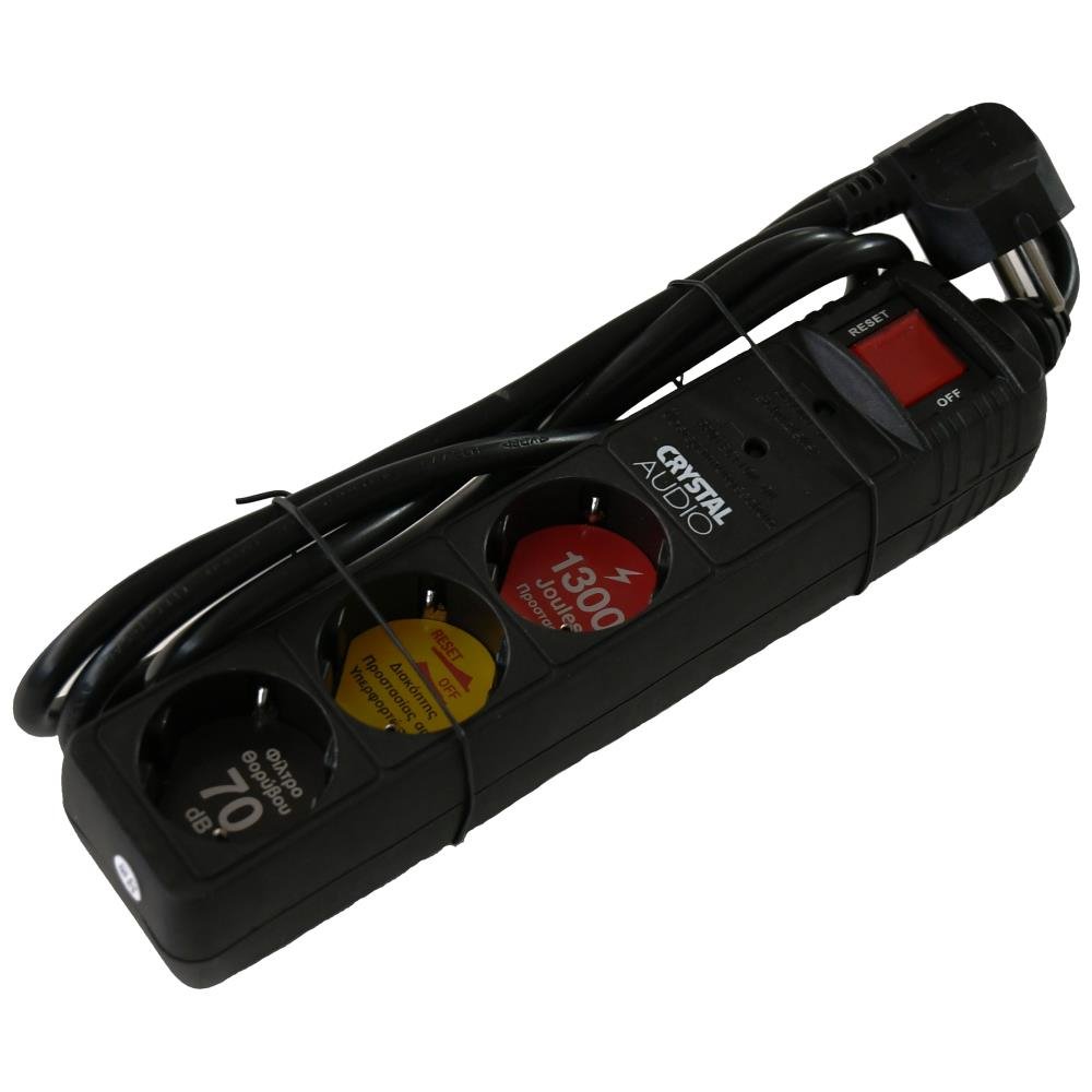 CRYSTAL ΠΟΛΥΜΠΡΙΖΟ ΑΣΦΑΛ. 3 ΘΕΣΕΩΝ ΜΑΥΡΟ με 100% προστασία από βραχυκυκλώματα και υπερφορτώσεις και στις δύο γραμμές - φάση και ουδέτερο. Tαχείας απόκρισης βαρίστορς οξειδίου μετάλλου (MOV). Διαςθέτει μονωτικό υλικό επικάλυψης MOV και θερμική ασφάλεια, 70dB προστασία σπό Ράδιο-Παρεμβολές και ρελέ προστασίας.