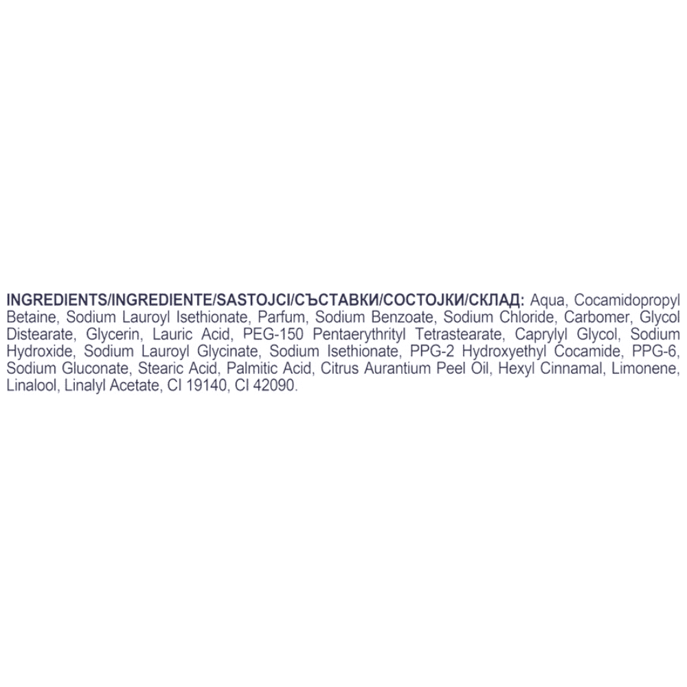 Aqua, Cocamidopropyl Betaine, Sodium, Lauroyl Isethionate, Glycerin, Sodium, Benzoate, Parfum, Sodium Chloride, Carbomer, Glycol Distearate, Caprylyl Glycol, Lauric Acid, Sodium Hydroxide, Stearic Acid, Sodium Lauroyl Glycinate, Sodium Isethionate, Palmitic Acid, PPG-6, PEG-150 Pentaerythrityl Tetrastearate, PPG-2 Hydroxyethyl Cocamide, Sodium Gluconate, PPG-2 Hydroxyethyl Cocamide, Cucumis Sativus Juice, Camellia Sinensis Leaf Extract, Alpha-Isomethyl Ionone, Hexyl Cinnamal, Linalool, CI 19140, CI 42091Αλλεργιογόνα