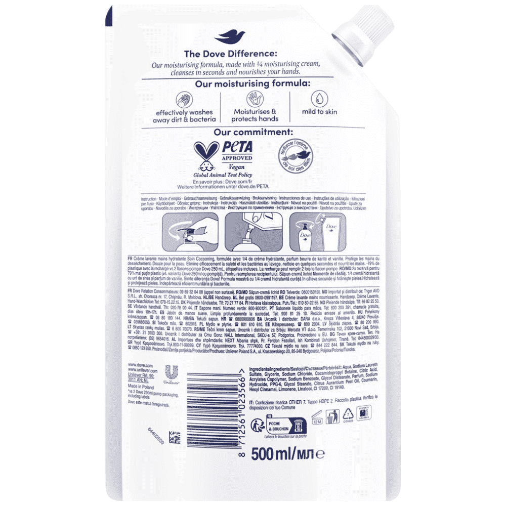 Υγρό κρεμοσάπουνο για τα χέρια, που καθαρίζει και ενυδατώνει την επιδερμίδα των χεριών Με φυσικούς για την επιδερμίδα ενυδατικούς παράγοντες Με ήπιους καθαριστικούς παράγοντες Τεχνολογία με 1/4 ενυδατική κρέμα