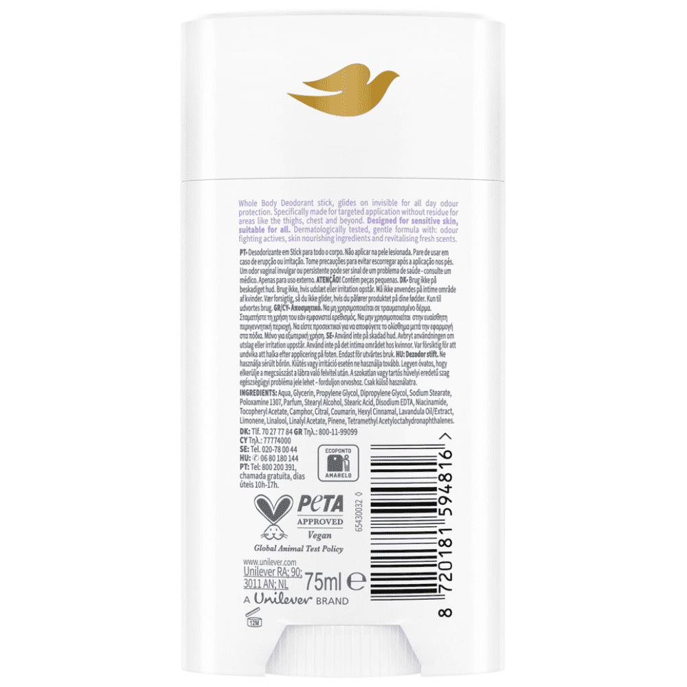 Νέο Stick αποσμητικό για ΟΛΟ το σώμα. Άρωμα Λεβάντας & Χαμομήλι. Ολοήμερη προστασία κατά των οσμών. Aπαλό με το δέρμα. 0% άλατα αλουμινίου. Γυναικολογικά & Δερματολογικά ελεγμένο. Με 25% θρεπτικό ορό.Γλιστράει εύκολα.