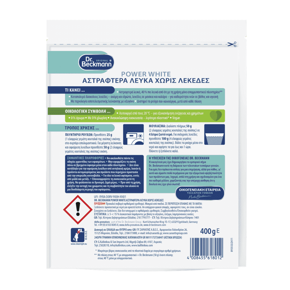 Dr Beckmann Λευκαντικό Ρούχων Σκόνη Power White 400gr