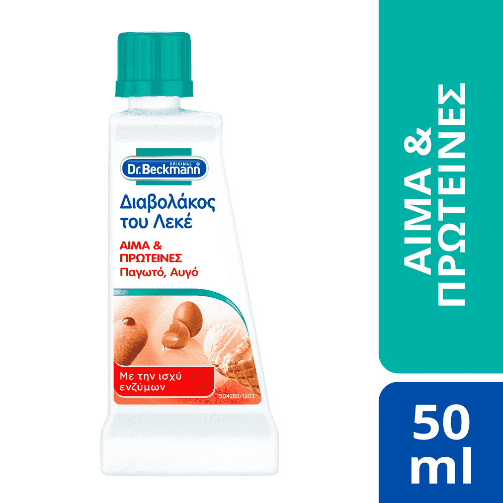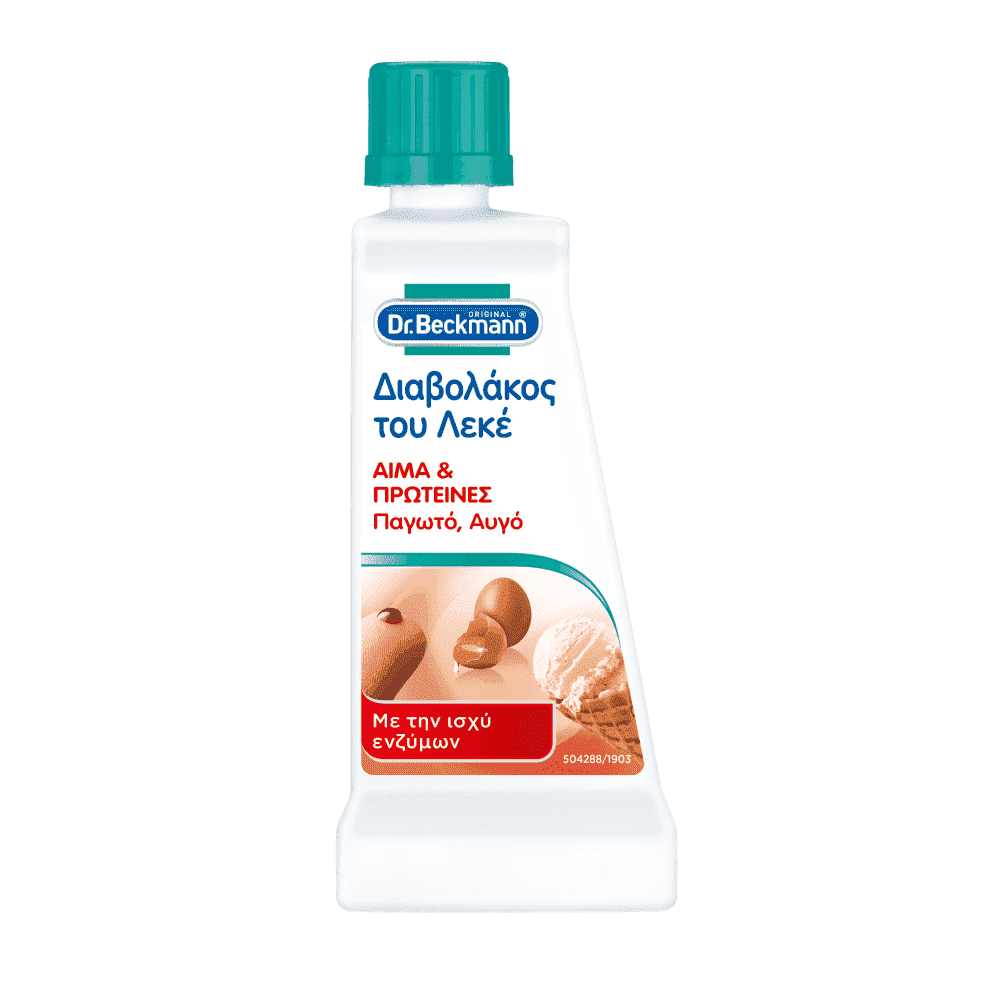 Ο Dr Beckmann Διαβολάκος του Λεκέ για Αίμα & Πρωτεΐνες έχει αποτελεσματική δράση χάρη σε μια ισχυρή σύνθεση βασισμένη σε ένζυμα. Τα συστατικά των λεκέδων, για παράδειγμα, από αυγά, πρωτεΐνες ή αίμα, διασπώνται και ο λεκές μπορεί στη συνέχεια να διαλυθεί και αφαιρεθεί με ευκολία από το ύφασμα.