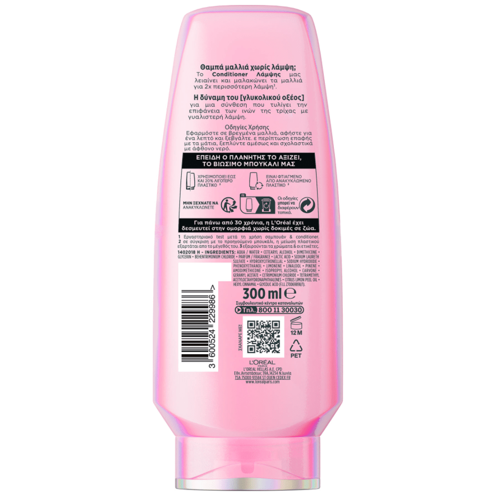 Μετά το λούσιμο με το Glycolic Gloss Shampoo, εφάρμοσε το προϊόν στα μήκη των μαλλιών σου κάνοντας απαλό μασάζ. Άφησέ το να δράσει για 1 μόλις λεπτό και στη συνέχεια ξέβγαλε. Σε περίπτωση επαφής με τα μάτια, ξέπλυνε αμέσως. Να φυλάσσεται μακριά από παιδιά.