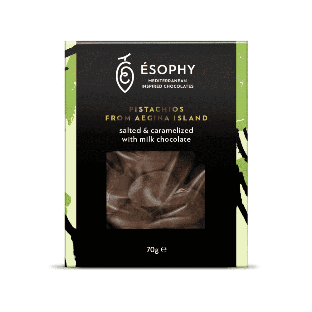 Απολαύστε την εκλεπτυσμένη γεύση φιστικιού Αιγίνης, καραμελωμένου και καλυμμένου με πλούσια σοκολάτα γάλακτος. Ένας μοναδικός συνδυασμός τραγανής υφής και κρεμώδους σοκολάτας, εμπνευσμένος από την ελληνική παράδοση.