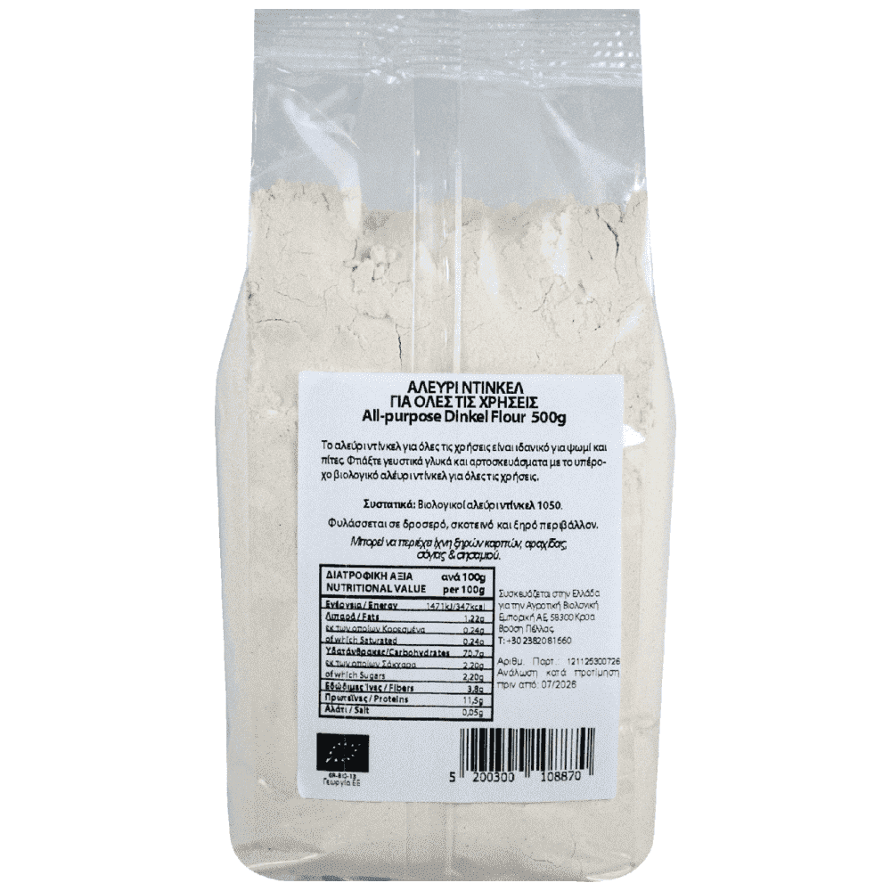 Το αλεύρι ντίνκελ για όλες τις χρήσεις είναι ιδανικό για ψωμί και πίτες. Φτιάξτε γευστικά γλυκά και αρτοσκευάσματα με το υπέροχο βιολογικό αλέυρι ντίνκελ για όλες τις χρήσεις.