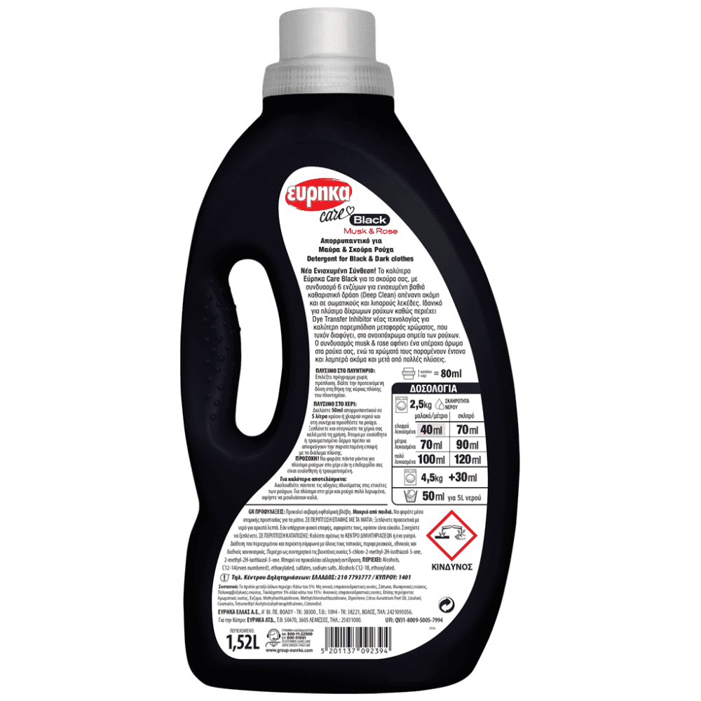 Εύρηκα Yγρό Απορρυπαντικό Care Black Musk & Rose 38Μεζ 1,5lt