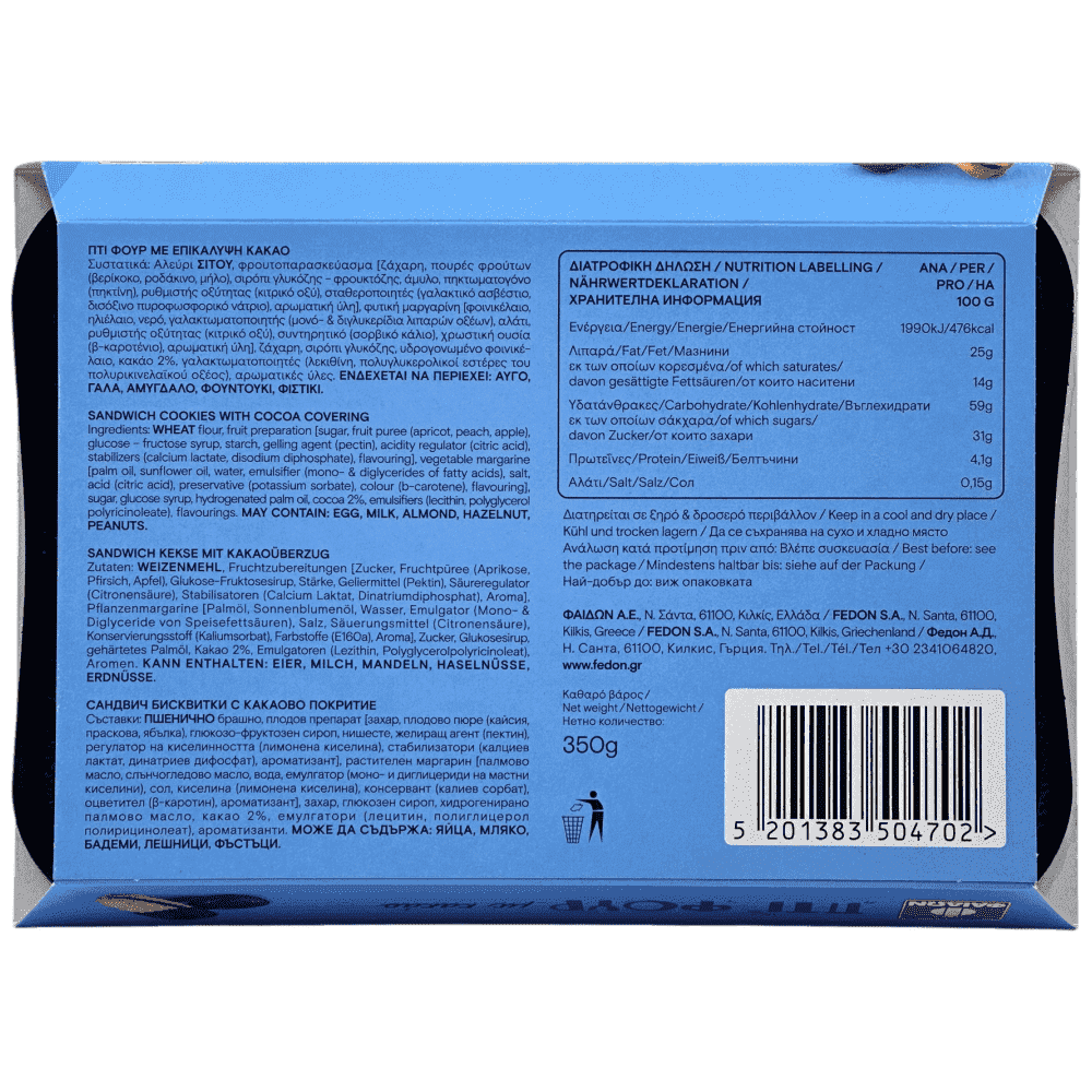 Παραδοσιακά πτι-φουρ με επικάλυψη κακάο, και λαχταριστή γέμιση με μαρμελάδα βερίκοκο-ροδάκινο.