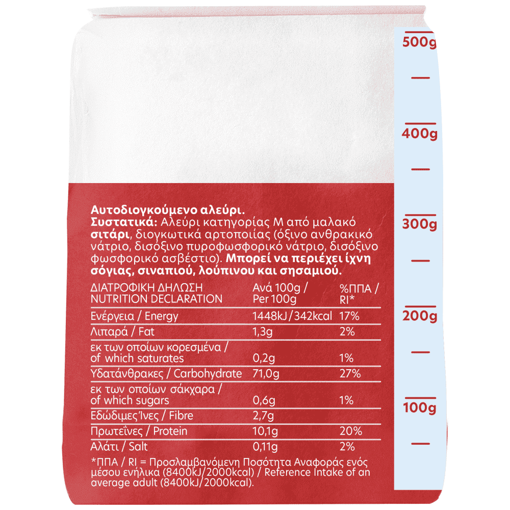 Αλεύρι κατηγορίας Μ από μαλακό σιτάρι, διογκωτικά αρτοποιίας: όξινο ανθρακικό νάτριο, δισόξινο πυροφωσφορικό νάτριο και δισόξινο πυροφωσφορικό ασβέστιο.