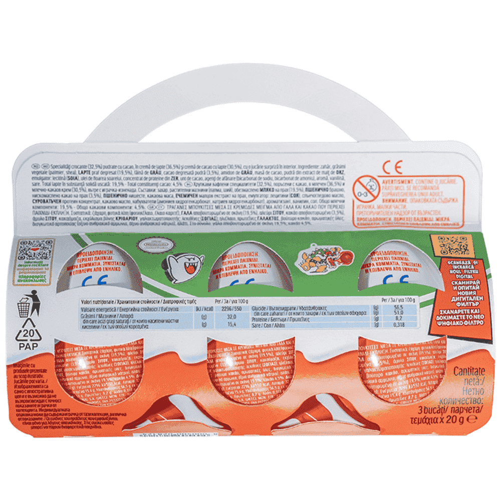 Ζάχαρη, φυτικά λίπη (palm, shea), ΓΑΛΑ αποβουτυρωμένο σε σκόνη (19,5%), αλεύρι ΣΙΤΟΥ , κακάο αποβουτυρωμένο (3,5%), φύτρα ΣΙΤΟΥ , άμυλο ΣΙΤΟΥ , κακαόμαζα, εκχύλισμα βύνης ΚΡΙΘΑΡΙΟΥ , γαλακτοματοποιητές: λεκιθίνες ( ΣΟΓΙΑΣ ), ηλιέλαιο, πρωτεΐνες ΓΑΛΑΚΤΟΣ , βούτυρο κακάο, αρωματικές ύλες, διογκωτικό αρτοποιίας (οξινο ανθρακικό αμμωνιο, όξινο ανθρακικό νάτριο), αλάτι.