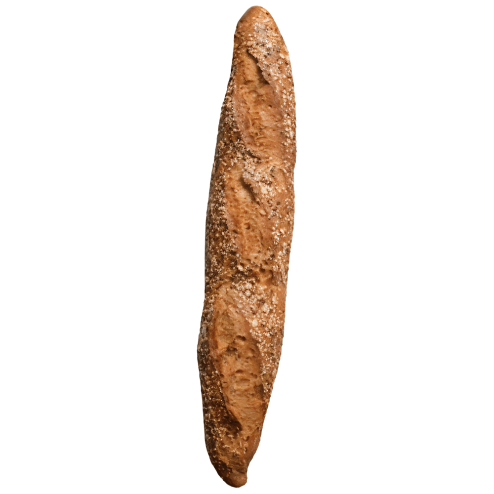 Μεσογειακό ψωμί ψημένο σε πέτρινο φούρνο με τρία διαγώνια κοψίματα στην επιφάνεια και μυτερές άκρες. Η επιφάνεια είναι ρουστίκ και πασπαλισμένη με νιφάδες βρώμης, σουσάμι και λιναρόσπορο. Το προϊόν είναι κατασκευασμένο από ζύμη σιταριού και μέρος σπόρων.