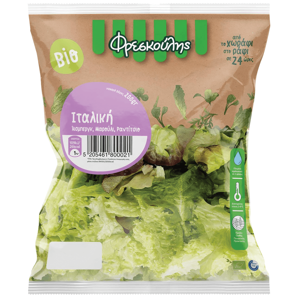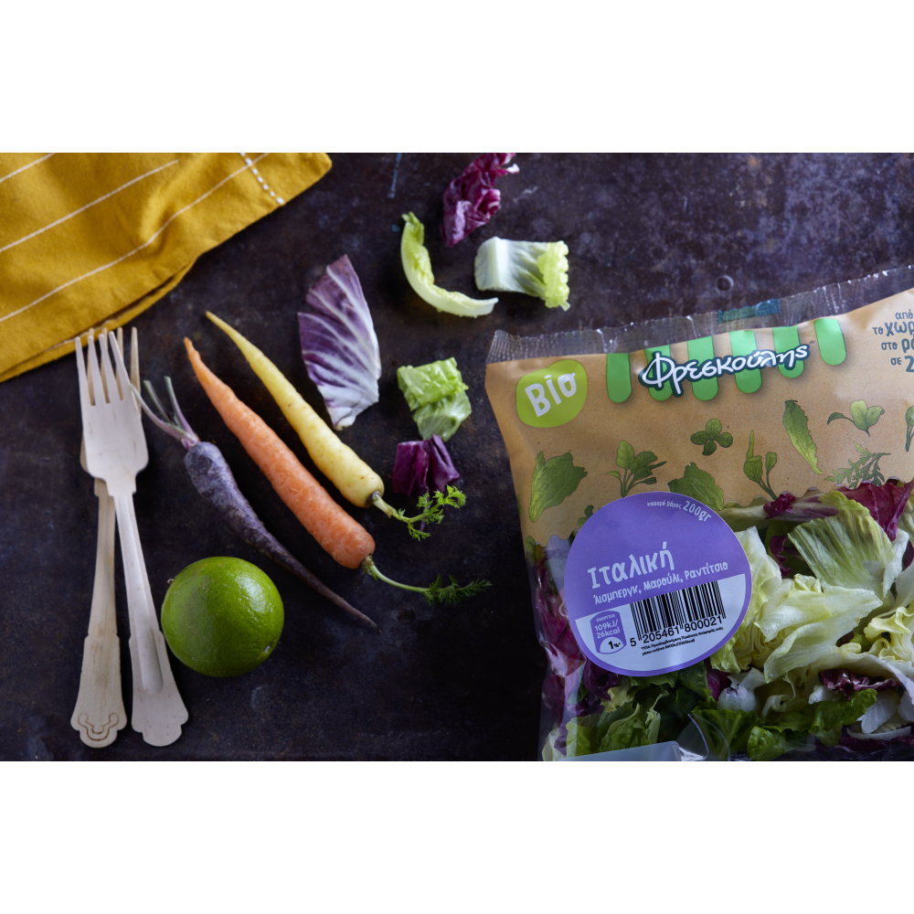 Η ιταλική σαλάτα βιολογική απαρτίζεται από έναν εξαιρετικό συνδυασμό λαχανικών, ο οποίος βοηθά στην κατακράτηση των υγρών και ρυθμίζει τη λειτουργία του εντέρου.