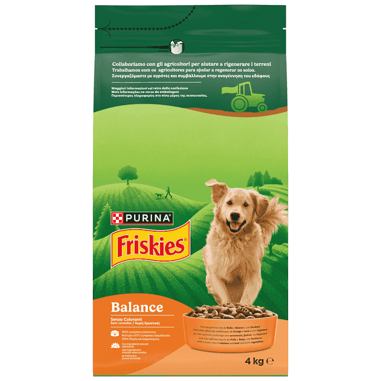 Τα PURINA® Friskies® Vitafit™ Balance είναι μια γευστική συνταγή με κοτόπουλο και λαχανικά, συνδυασμένη με δημητριακά ολικής άλεσης, βιταμίνες Β και Ωμέγα 3 & 6 λιπαρά οξέα.Τα PURINA® Friskies® Balance είναι πηγή ποιοτικών πρωτεϊνών και όλων των άλλων θρεπτικών συστατικών που χρειάζεται ο σκύλος σας για να ζήσει μια χαρούμενη και υγιή ζωή με την οικογένειά σας.