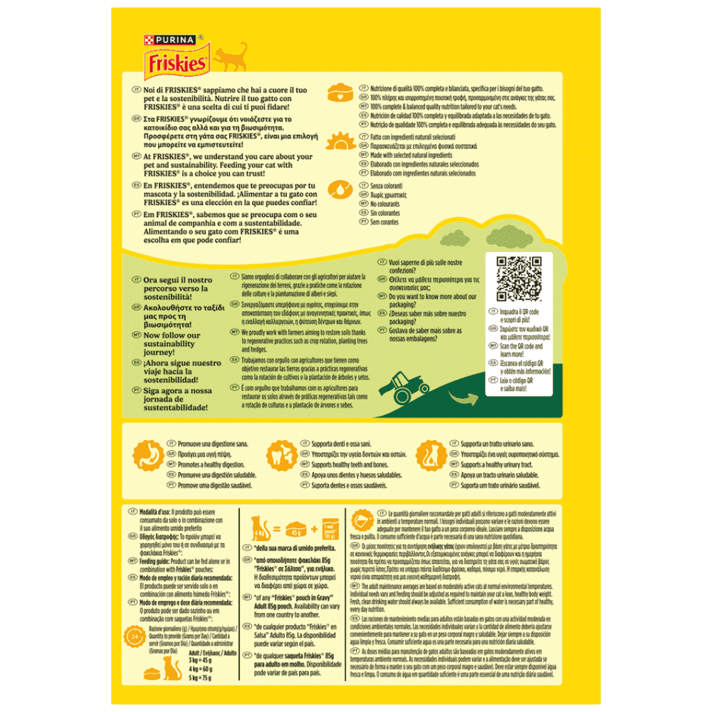 Τα Friskies® διατρέφουν γάτες με σωστή, υγιεινή τροφή για δεκαετίες. Γεμίζουμε χιλιάδες μπωλ και αυτή η τιμή συνοδεύεται από τεράστια ευθύνη. Γι' αυτό οι συνταγές Friskies® παρασκευάζονται χωρίς πρόσθετες τεχνητές χρωστικές, αρωματικές ύλες ή συντηρητικά. Για να μπορείτε να συνεχίσετε να τις διατρέφετε με την ίδια νόστιμη τροφή που αγαπούν και να νιώθετε περήφανοι γι' αυτό.