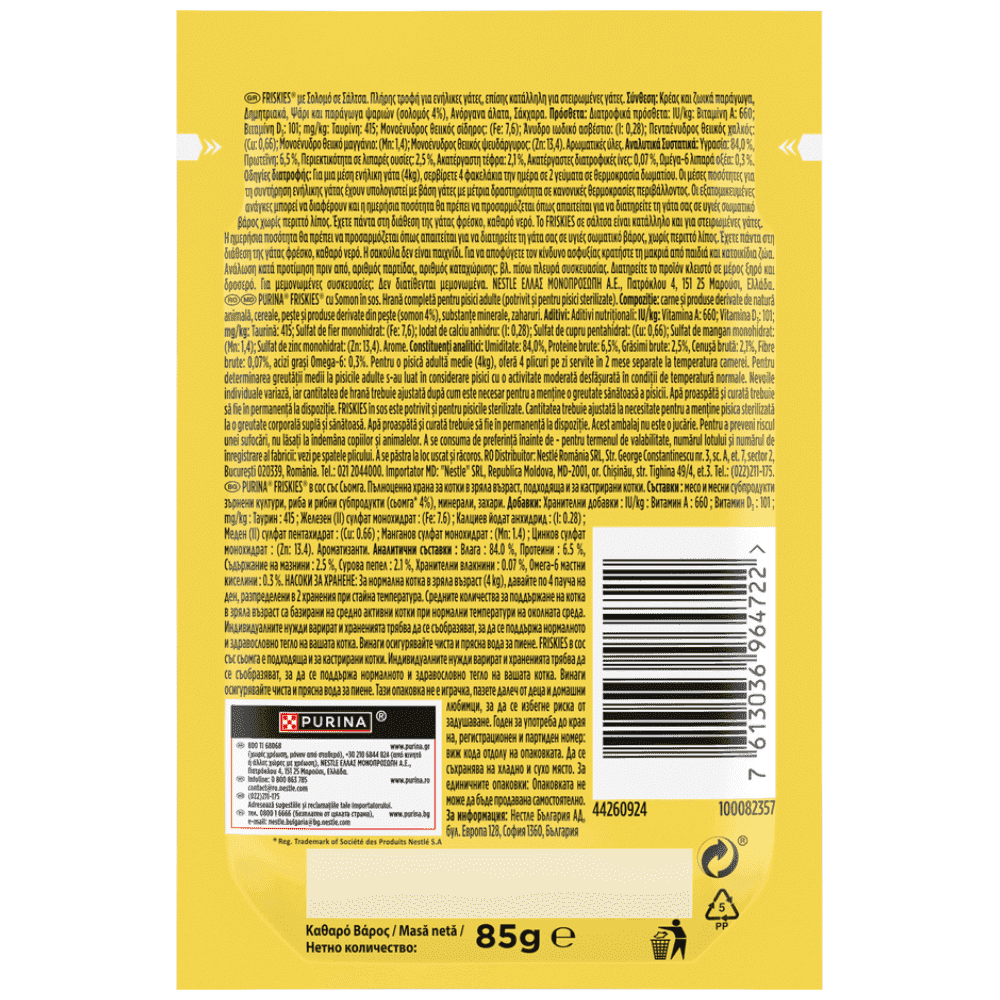 Νόστιμες και θρεπτικές συνταγές που παρασκευάζονται με επιλεγμένα υλικά υψηλής ποιότηταςΗ μοναδική προσωπικότητα της γάτας αποτελεί κάτι πολύ ιδιαίτερο για το σπίτι σας, και προσφέρει χαρά στη ζωή σας.Για αυτό το λόγο η Friskies τής παρέχει την τροφή που αγαπά και χρειάζεται, για να μπορεί να συνεχίζει να σας εκπλήσσει και να σας συναρπάζει κάθε ημέρα. Στα FRISKIES®, η δέσμευση μας απέναντι σας είναι να σας εξασφαλίζουμε πάντοτε:- Μια σειρά προϊόντων με υπέροχη γεύση- Η οποία παρέχει 100% πλήρη και ισορροπημένη τροφή με επιλεγμένα υλικά υψηλής ποιότητας.- Παρασκευασμένη από τους ειδικούς της Purina με περισσότερα από 85 έτη εμπειρίας στη διατροφή των κατοικιδίων. Friskies® για να μπορεί η γάτα σας να συνεχίσει να σας προσφέρει αυτό το ιδιαίτερο στοιχείο που κάνει το σπίτι σας, σπιτικό.Δοκιμάστε ολόκληρη τη σειρά από τις νόστιμές συνταγές μας και προσφέρετε στη γάτα σας κάτι διαφορετικό κάθε μέρα.Οι γάτες δεν αγαπουν τίποτα περισσότερο από το να εξερευνούν τον κόσμο γύρω τους, ενθουσιάζονται από τις εικόνες και τους ήχους και αναζητούν πάντα νέες περιπέτειες για τα πατουσάκια τους. Η γάτα σας είναι ένα πλήρες μέλος της οικογένειας και φέρνει χαρά στη ζωή σας! Αυτός είναι και ο λόγος που είναι σημαντικό να ταϊζετε τη γάτα σας μία τροφή που να είναι τόσο νόστιμη όσο και θρεπτική, ώστε να καλλιεργείτε την αγάπη τους για ανακάλυψη. Γι' αυτό οι ειδικοί της